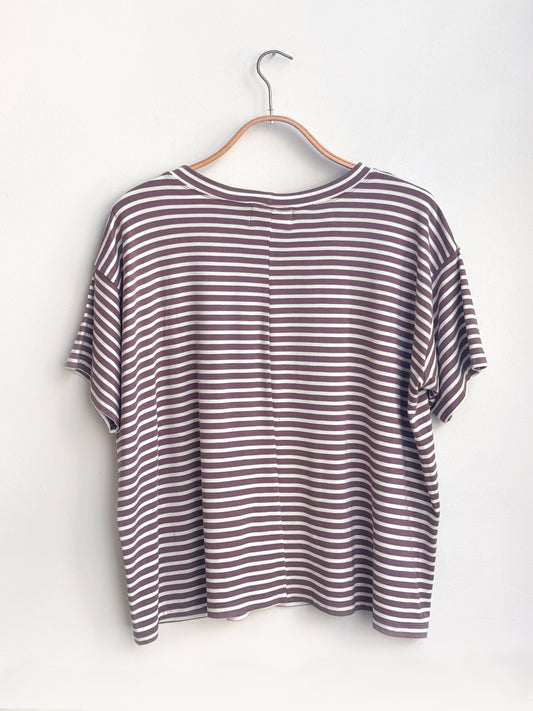 Sold outחולצת פיק-אפ פס לבן סגול