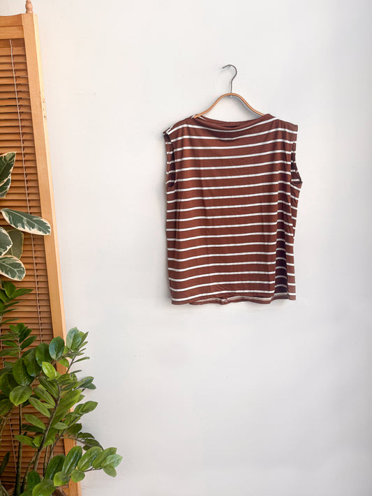Sold outחולצת אלבי פס חום לבן