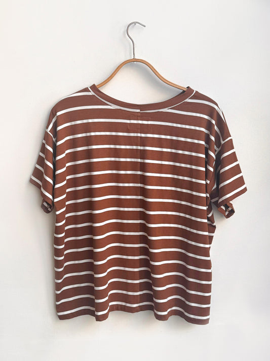 חולצת פיק-אפ פס חום לבן