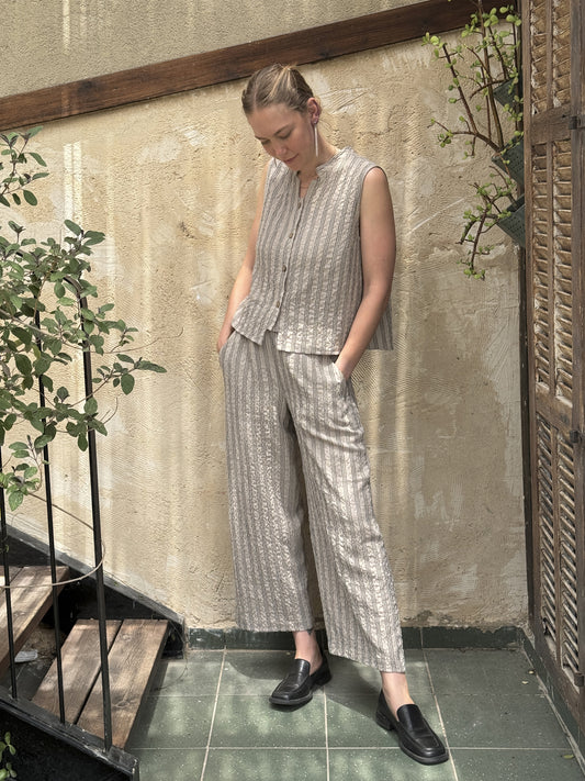 הקולקציה עשויה כולה מבד ויסקוזה מעורב רך ונעים עם פסים עדינים