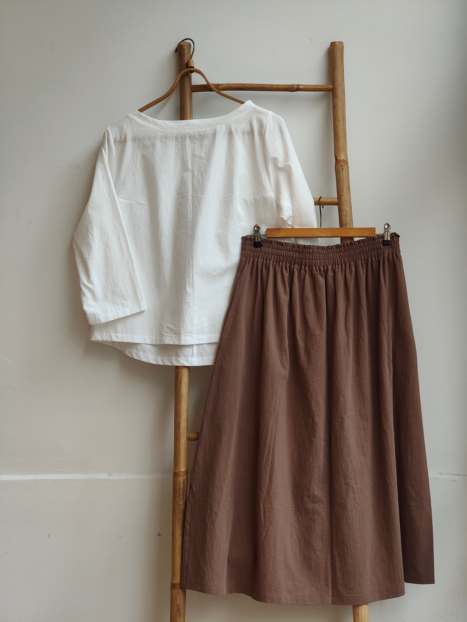 בתמונות בשילוב חצאית כותנה קריספית ואפודת בלייר