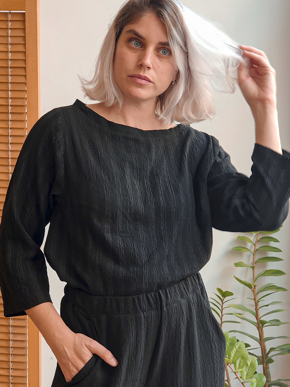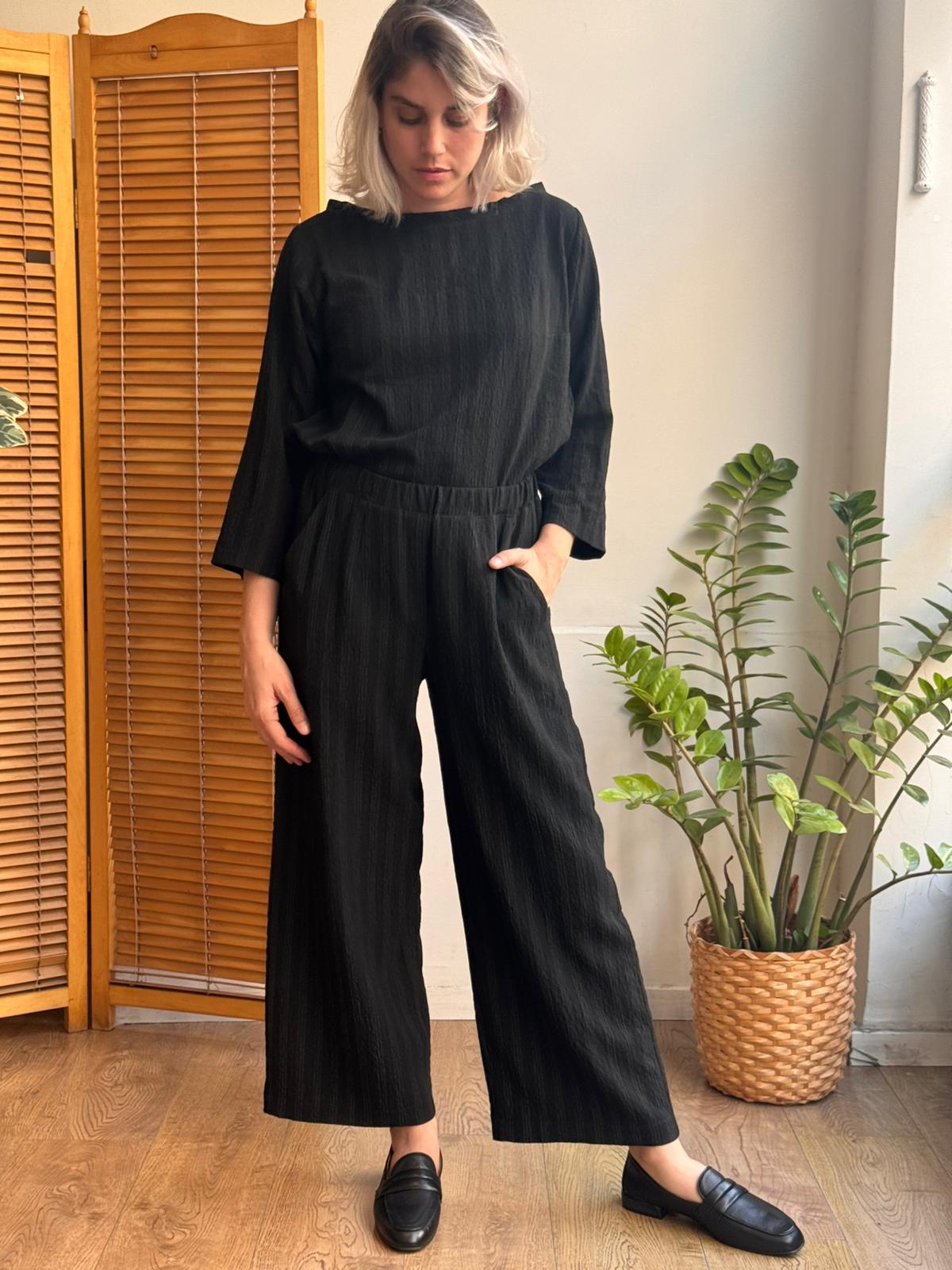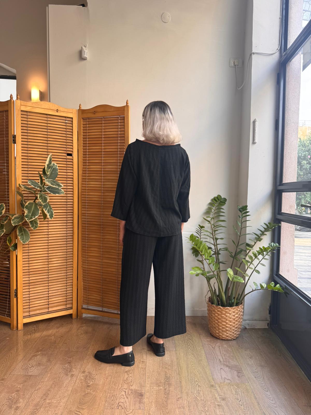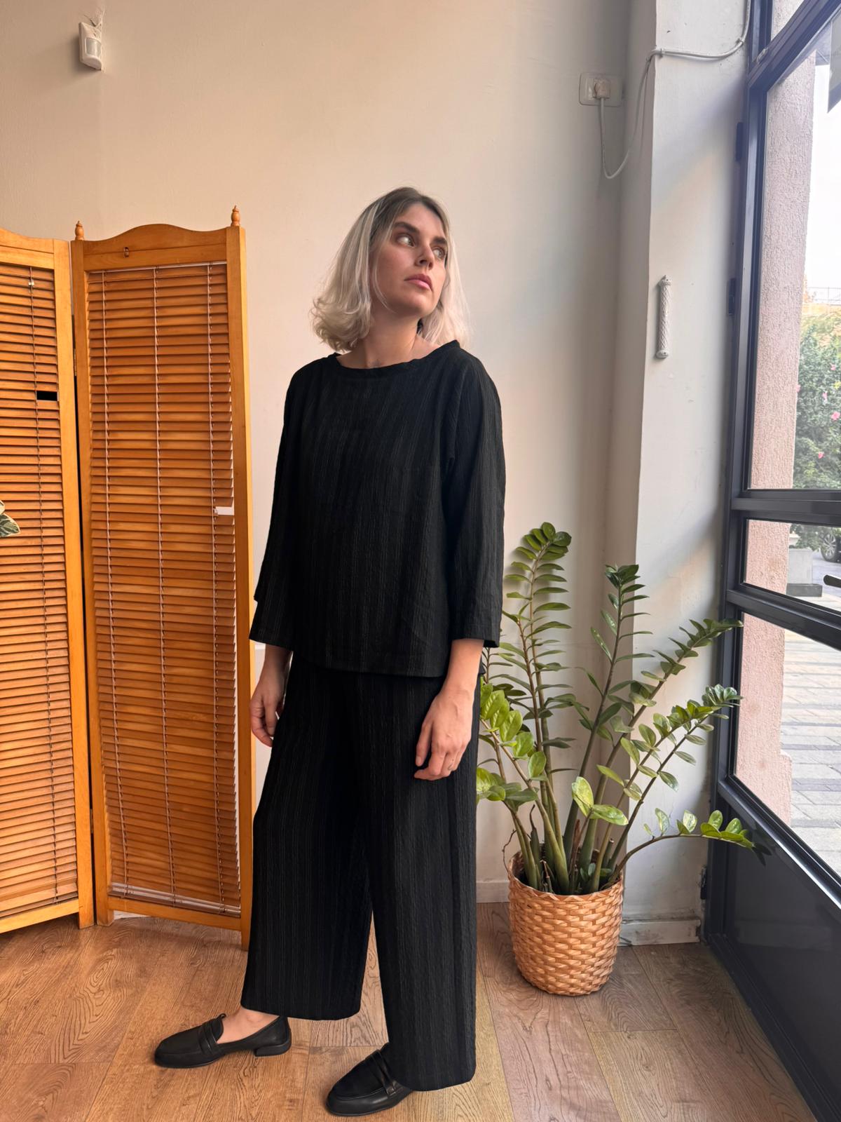 חולצת ניקו בשילוב מכנסי בלאנקו שחור פס