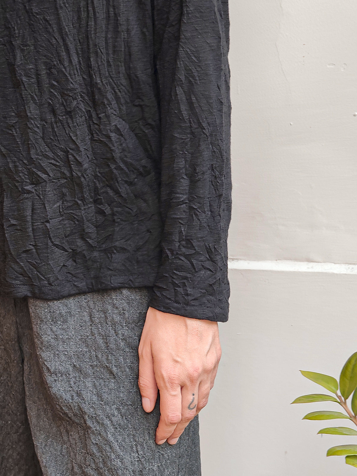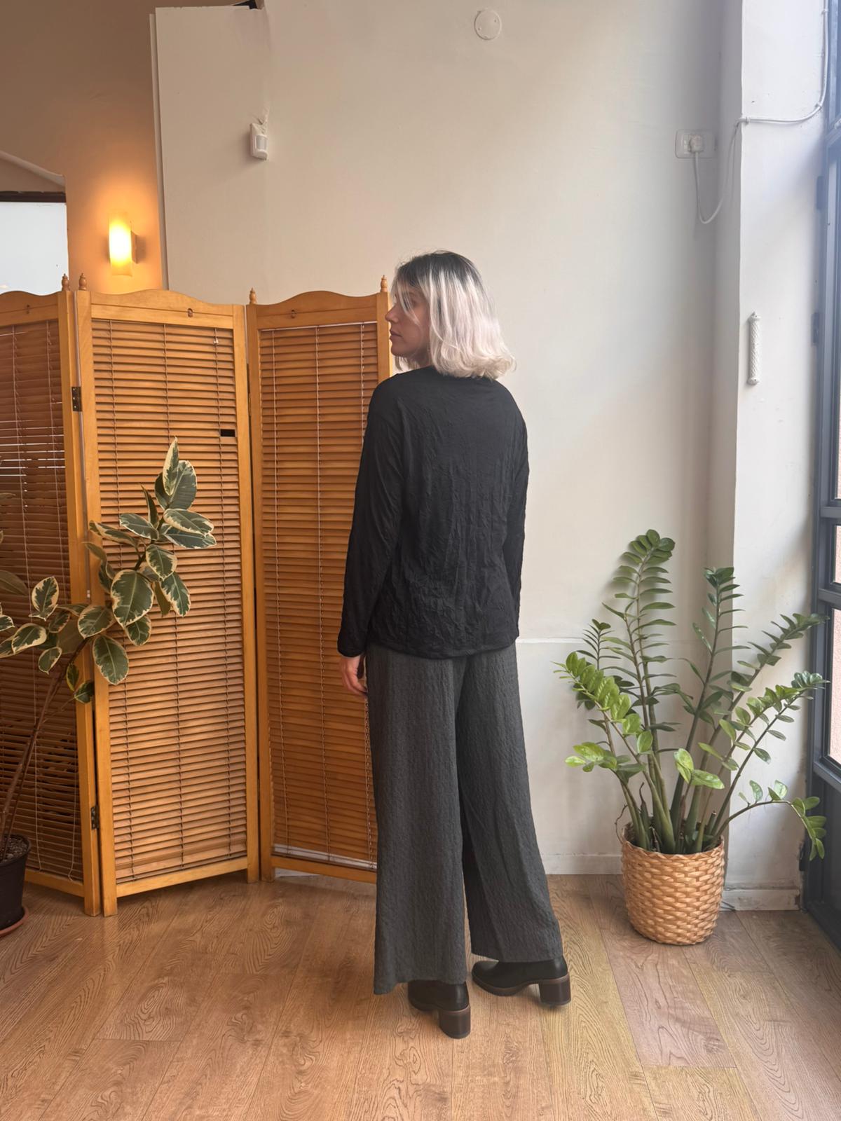 חולצת סמארט ארוכה מבד בעל טקסטורה מקומטת
