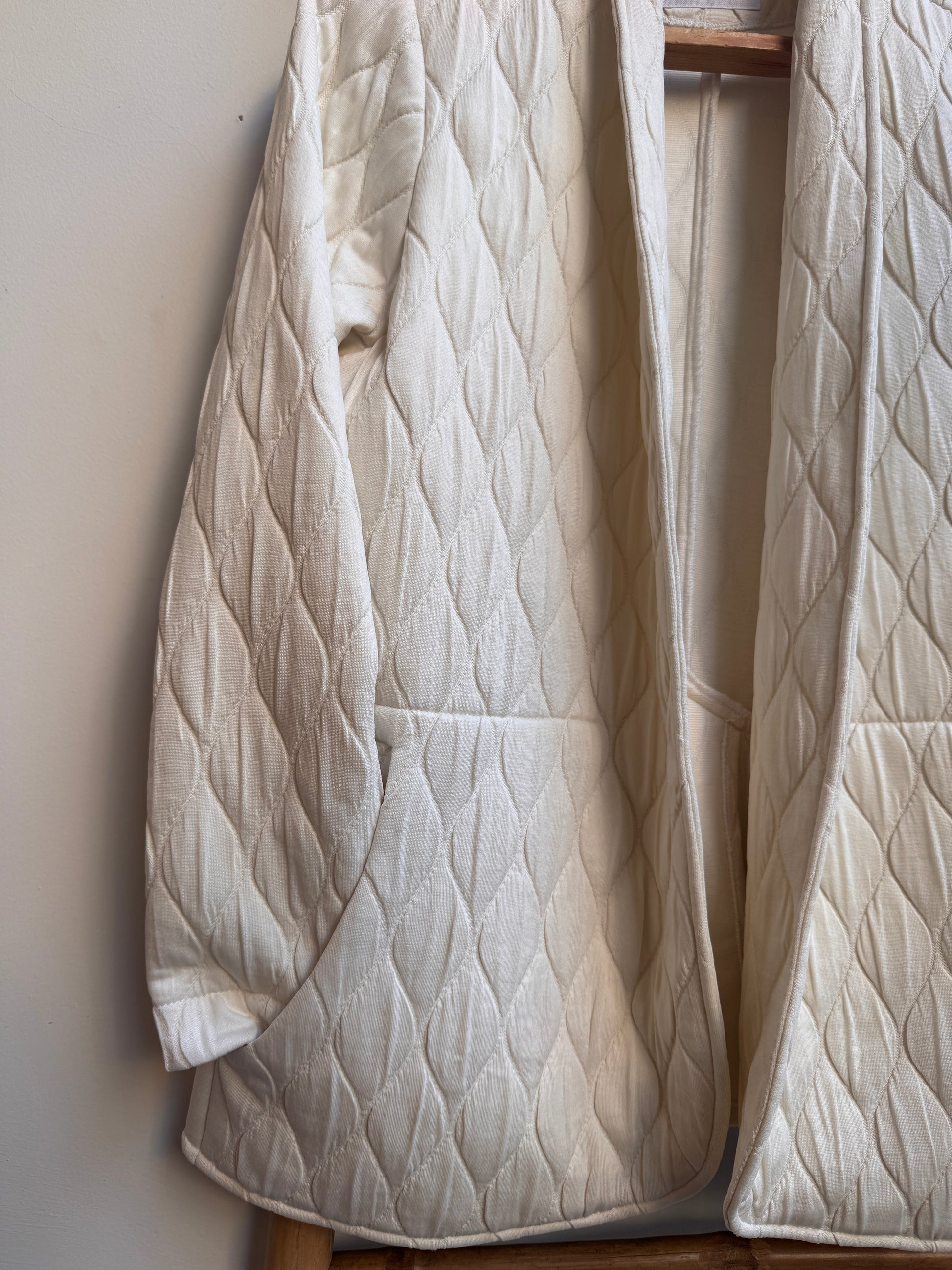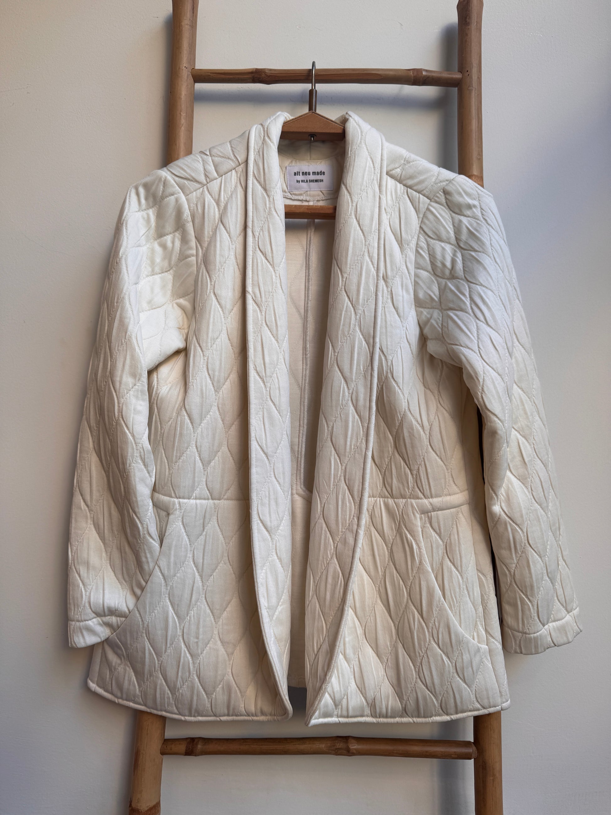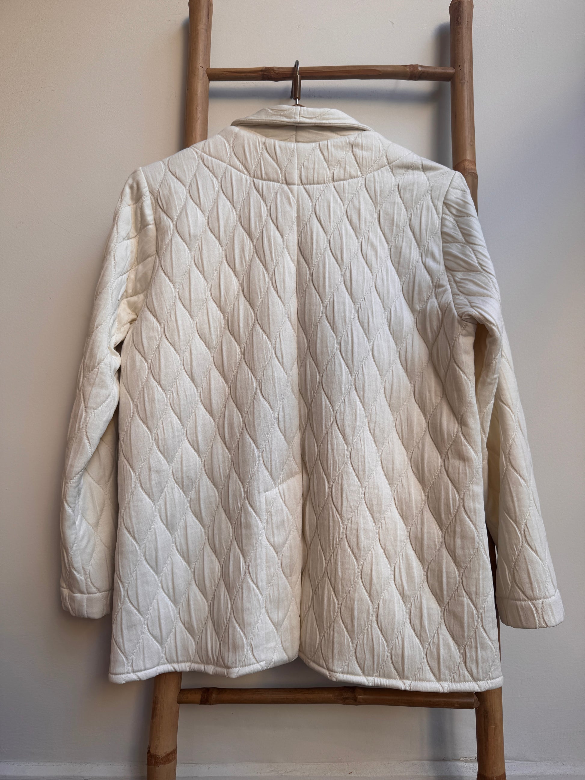 ז׳קט קווילט רך עם תפירה גיאומטרית עדינה וגזרה נינוחה.