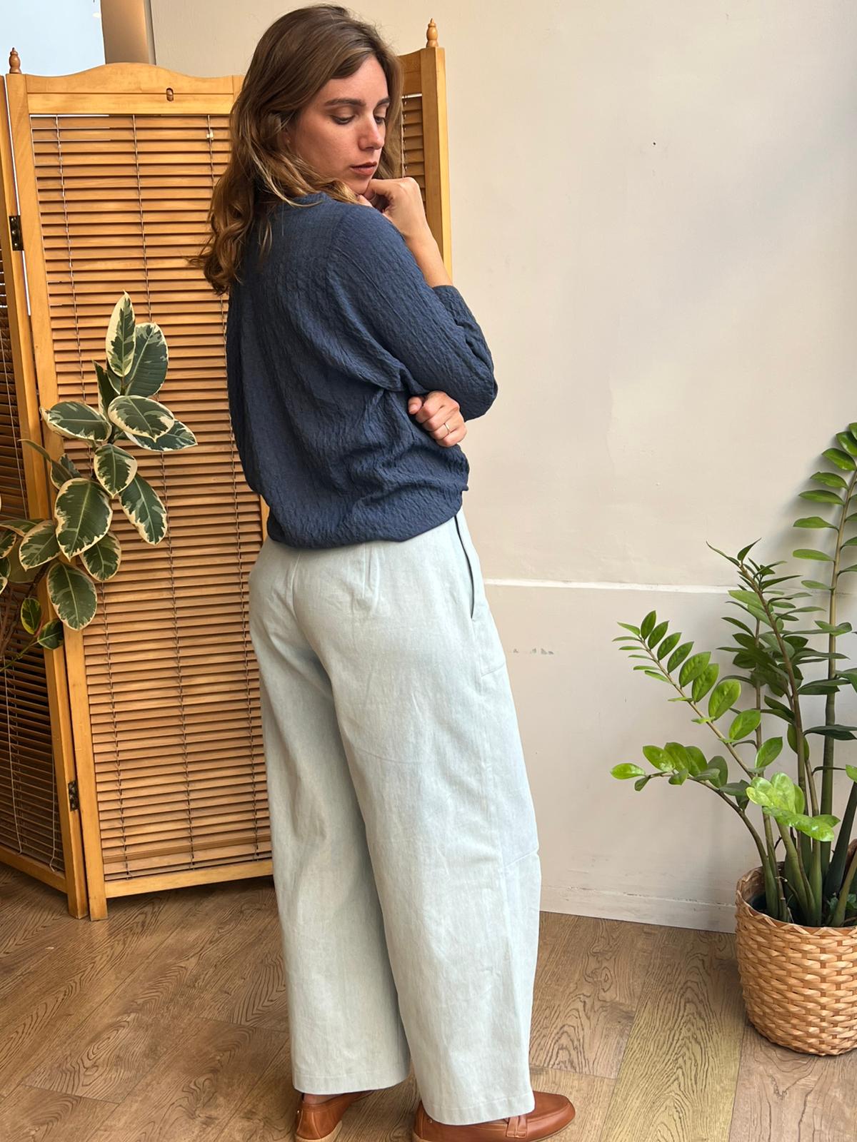 חולצת ניקו כחולה בשילוב מכנסי ג'ינס תום