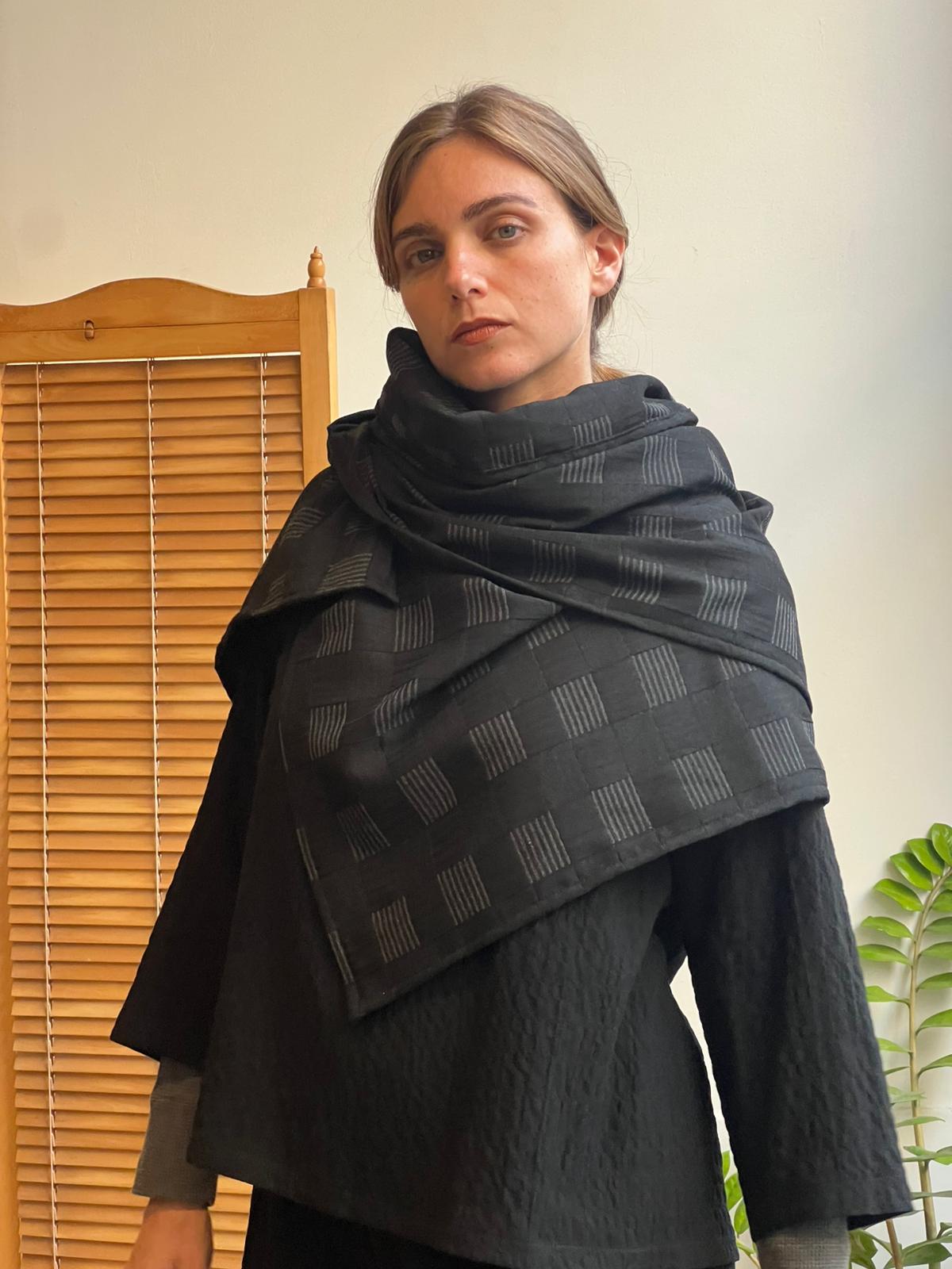 תמר הדוגמנית בגובה 1.70 ולובשת צעיף שאל