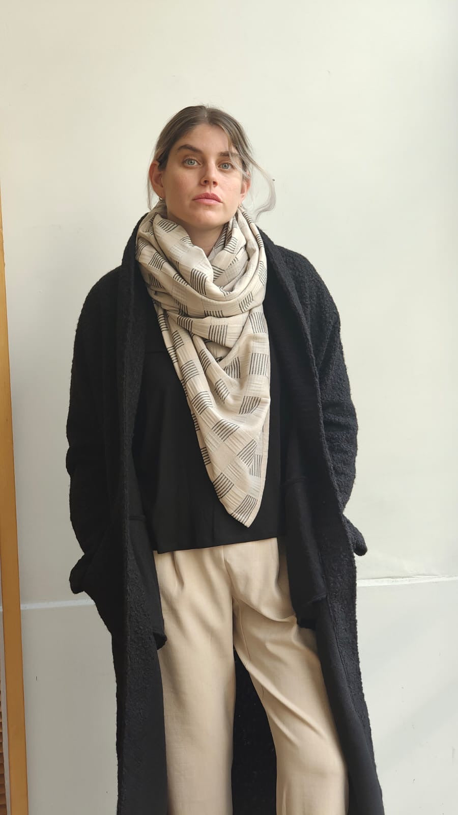 רוזה הדוגמנית בגובה 1.68 ולובשת צעיף שאל